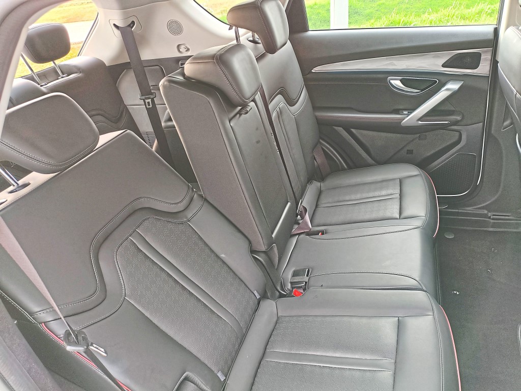 The second row is generous for knee room and headroom, and the backrests recline far enough that passengers can easily find a comfortable angle.