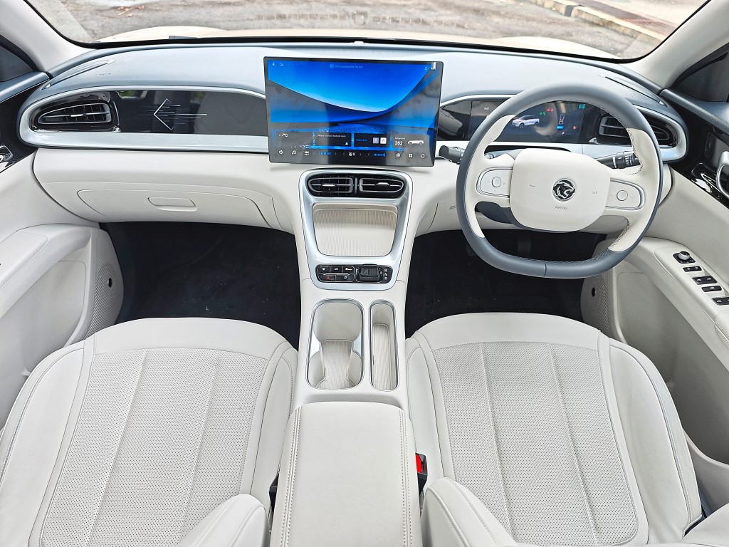 It helps that it has a lounge-style interior, complete with a two-tone leatherette steering, a 14.6-inch FHD display head unit and an 8.8-inch full-colour digital instrument monitor.