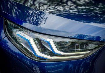 The advanced lighting system features cornering light for enhanced visibility through bends, no-dazzle 12-segment high-beam headlights with BMW Selective Beam and automatic headlight range control for optimal illumination, plus distinctive blue design accents.