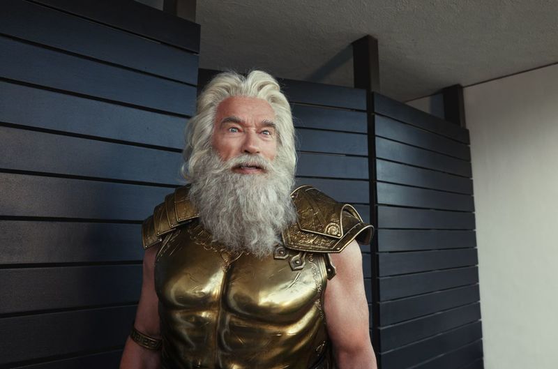 In the 60-second spot, Schwarzenegger plays a grumpy Zeus (“the God of Lightning”), whiling away retirement in Palm Springs, occasionally charging the neighbours’ golf carts and hedge trimmers. Hera, played by Salma Hayek, surprises him with the BMW and — spoiler alert — his mood improves.