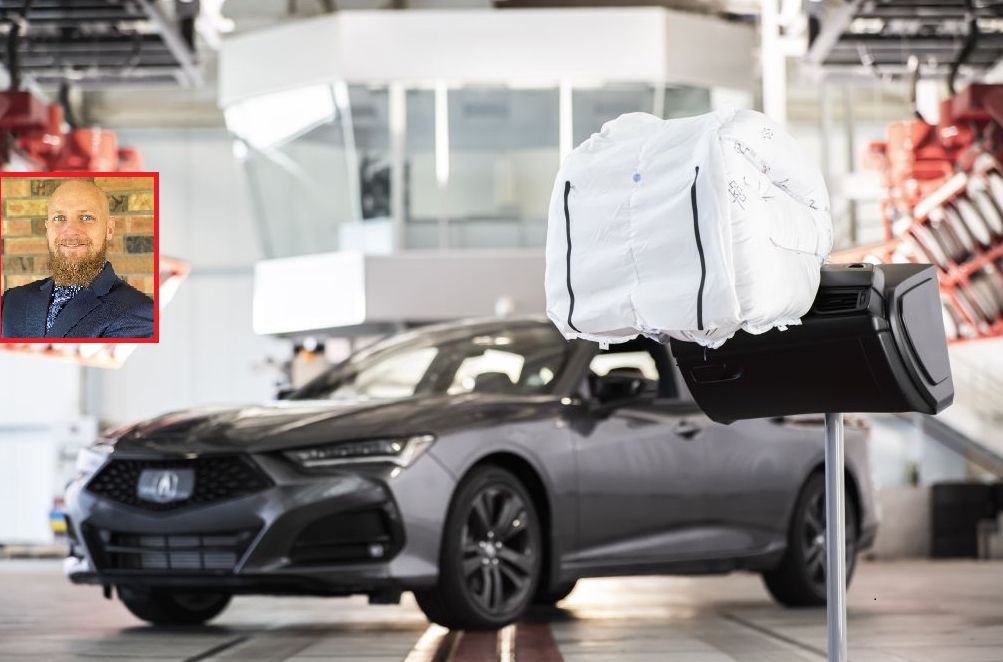 Heitkamp (inset) with the airbag he helped create.