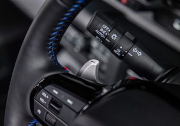 The interior also benefits from distinctive blue highlights that pay homage to the original City Turbo II, while ambient lighting bathes the dashboard in a cool blue light at night, changing to a rich purple when BOOST Mode is selected.