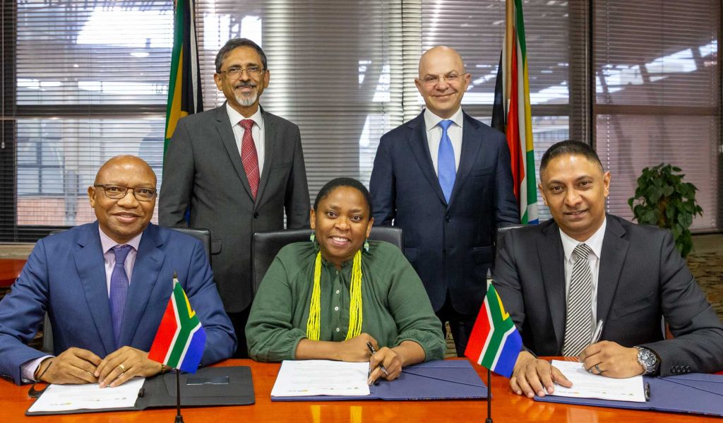 Cherfan (standing, right) with other signatories to the deal.