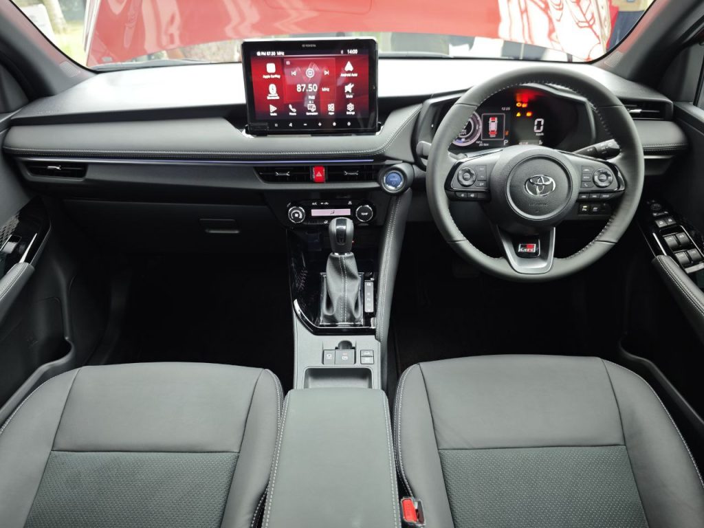 This includes GR-specific aerodynamics, black accents, and distinctive badging are paired with GR-tuned suspension and electric power steering for sharper handling and improved stability at higher speeds without compromising everyday comfort.