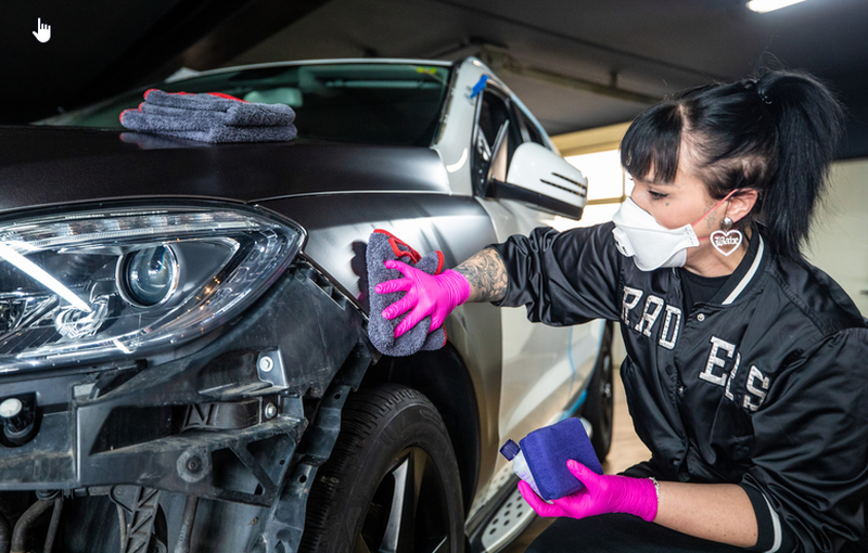 Before a vehicle can be wrapped, extensive preparatory work is necessary. The surface to be covered must be absolutely clean before the film can be applied.